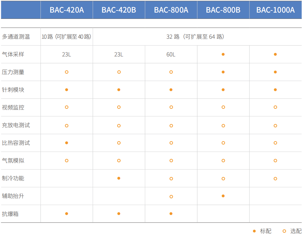 儀器性能方面,BAC系列可針對長邊≤1500mm范圍內(nèi)的電芯開展安全、精準(zhǔn)、可靠的絕熱熱失控測試。與目前國內(nèi)外廠家的標(biāo)準(zhǔn)產(chǎn)品相比,BAC系列大容量腔體的抗爆性和產(chǎn)氣測試能力顯著提升,能夠承受大型電芯的熱失控溫壓沖擊。