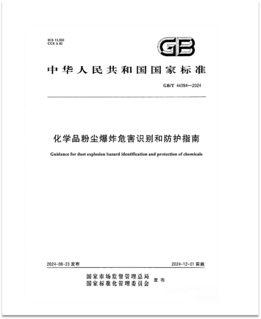 GB/T 44394-2024《化學粉塵爆炸危害識別和防護指南》將于2024年12月1日正式實施,該標準由全國危險化學品管理標準化技術委員會(SAC/TC 251)制定并歸口,上?;ぴ簷z測有限公司、中國安全生產科學研究院、南京理工大學、上?;ぱ芯吭河邢薰镜榷嗉覚嗤C構參與起草。