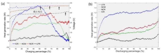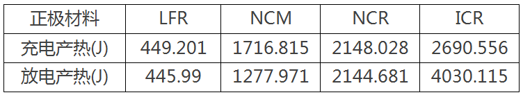 1. 不同正極材料電池充放電產(chǎn)熱功率