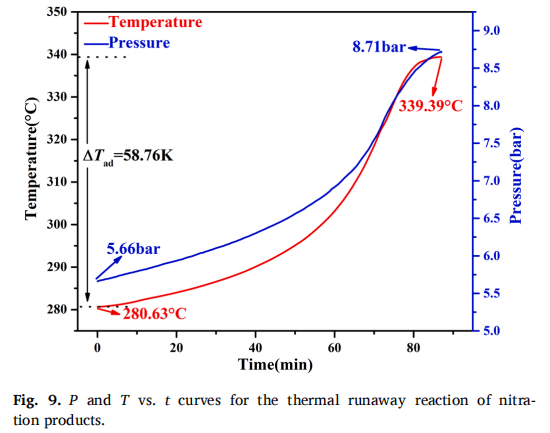 對于強(qiáng)放熱類的硝基化合物熱危險參數(shù)測試,TAC-500A絕熱加速量熱儀可以實現(xiàn)反應(yīng)溫度實時追蹤,絕熱溫升快速追蹤,確保實驗安全的同時精確量熱。