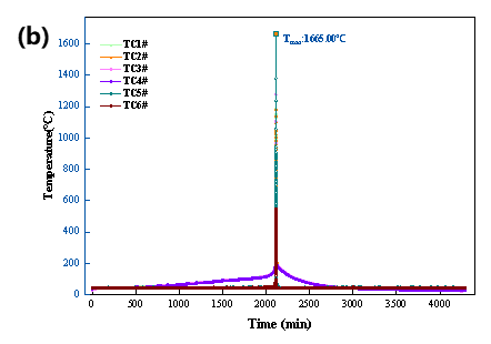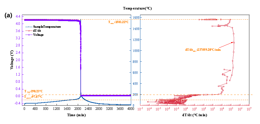 圖2 三元九系電池?zé)崾Э?a)溫度&電壓-時間曲線、溫升速率-溫度曲線和(b)附加熱電偶溫度-時間曲線