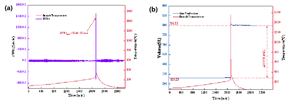 圖3 三元九系電池?zé)崾Э?a)產(chǎn)氣速率曲線及(b)產(chǎn)氣量曲線