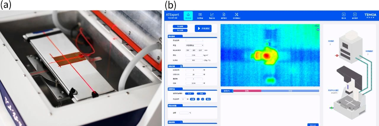 圖3 (a) 3D熱物性分析儀電池樣品安裝示意圖;(b) 3D熱物性分析儀操作軟件界面